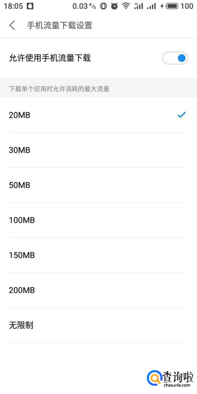 进入设置界面,在下方选项中点击“手机流量下载设置”