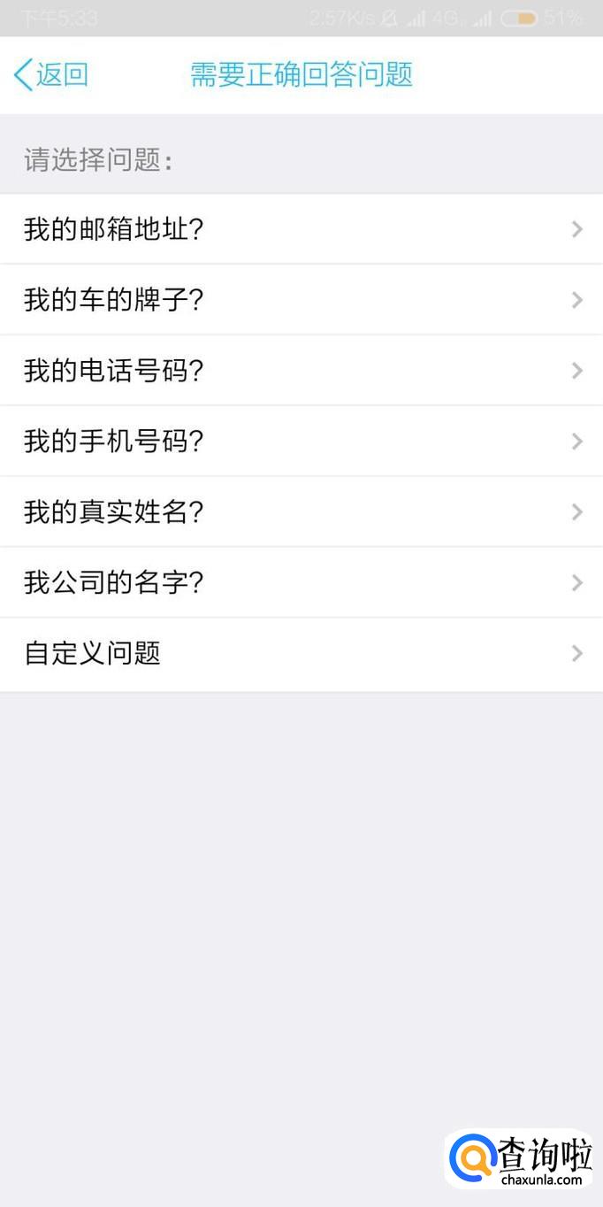 最后选择一个问题,或自定义一个问题,输入答案点击“完成”即可。