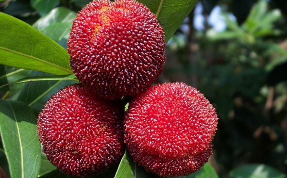 优质的杨梅果肉含糖量为12%~13%,含酸量为0.5%~1.1%,并且富含纤维素、矿质元素、维生素和一定量的蛋白质、脂肪、果胶及8种对人体十分有益的氨基酸,其果实中钙、磷、铁含量要高出其他水果10来倍。