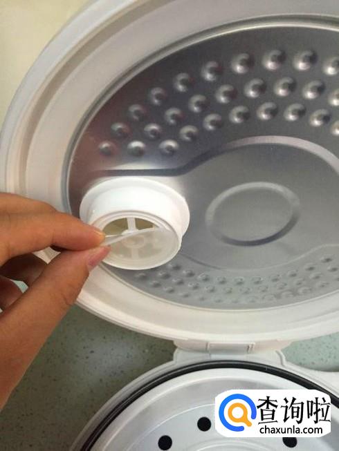 电饭煲的排气孔是可以拿下来的,拿下来之后直接放进水里清洗,如果有油污的话,可以使用洗洁精,但一定要多次冲洗干净,然后安装上就可以了。