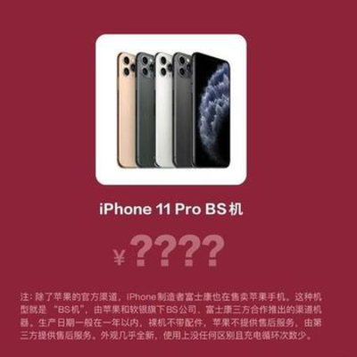 iPhone制造者富士康也在卖苹果手机。这种机型一般被称为"BS机",也是就苹果组装机。由苹果和软银旗下BS公司、富士康三方合作推出的渠道机器。生产日期一般在一年以内,裸机不带配件。外观几乎全新,使用上没任何区别,充电循环次数少,价格依据成色而定,一般都能便宜上几百。