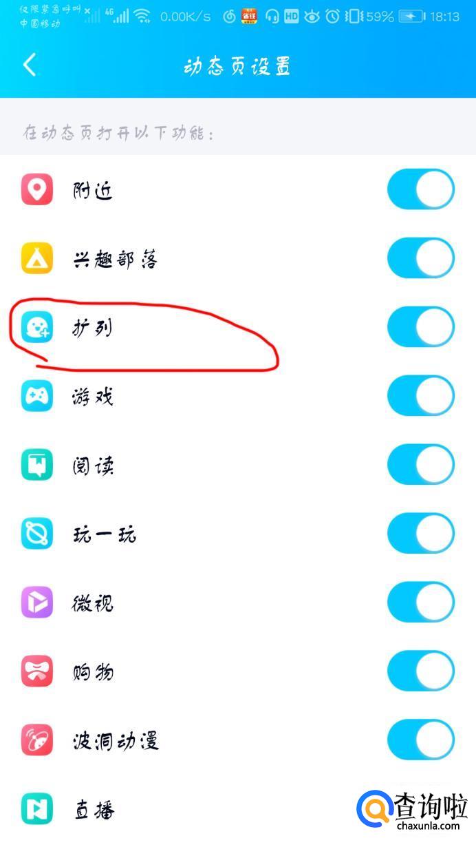 若找不到,点击右上角的图标,进入界面,再找“扩列”,打开即可,若还是没有,那就是没有开通了。