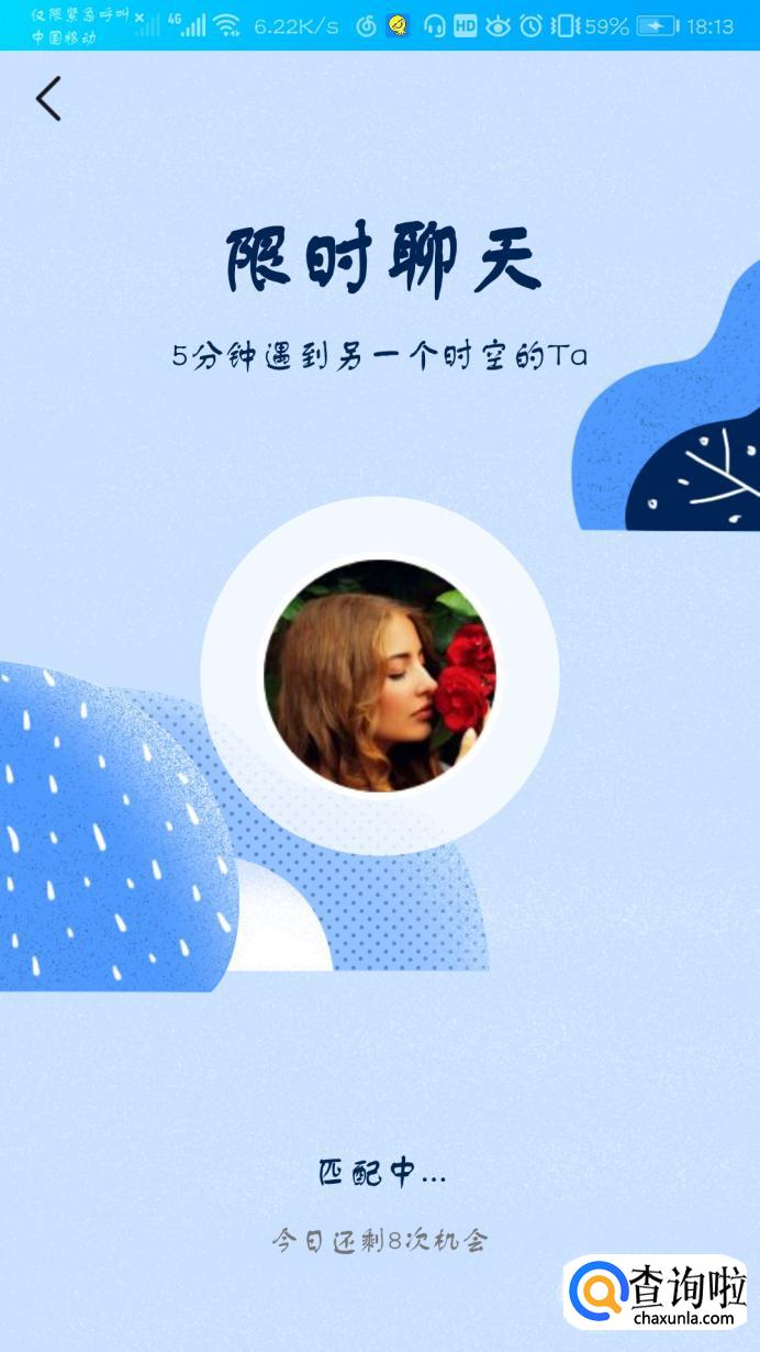 匹配成功会进入聊天界面。这个每天只能匹配10次,还是蛮好玩的。
