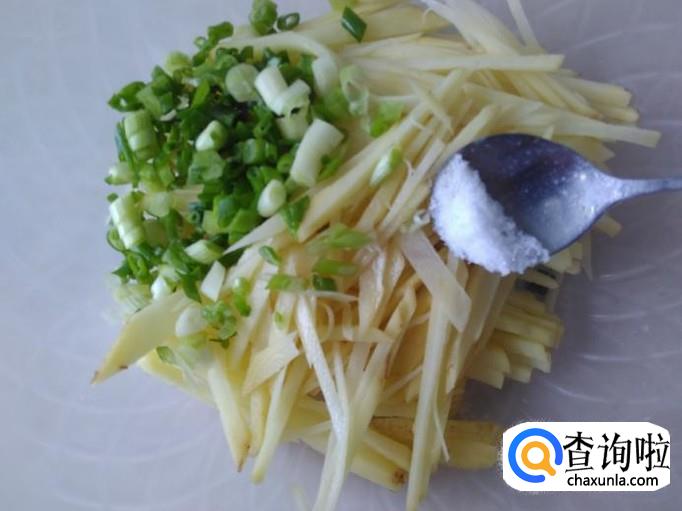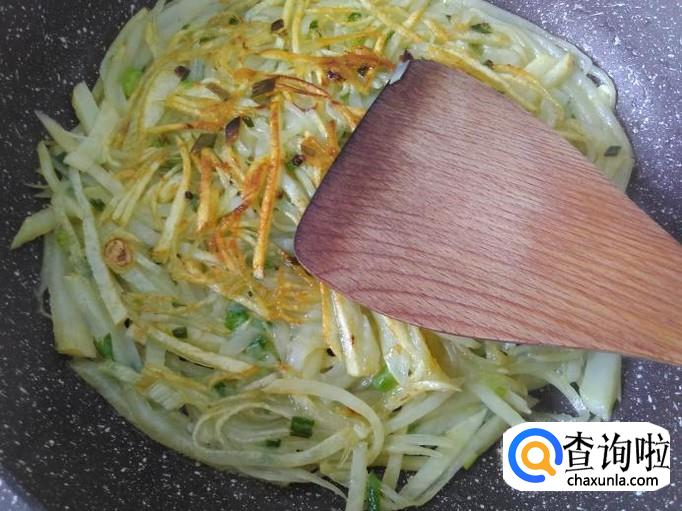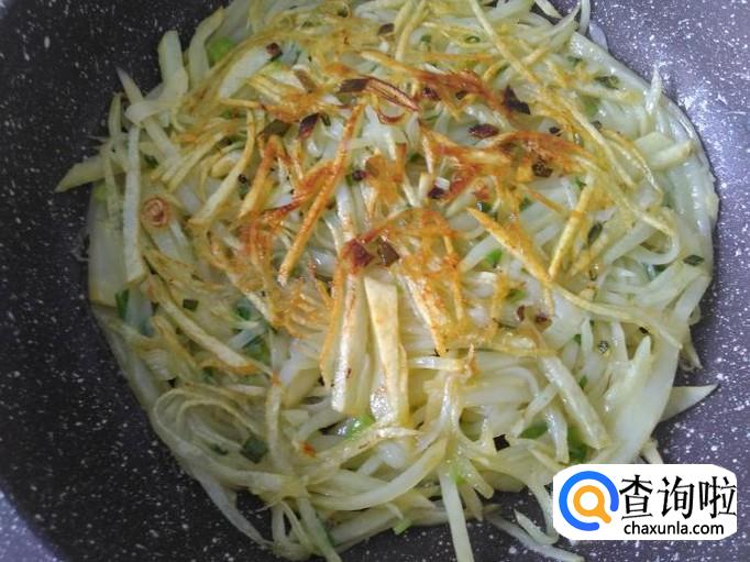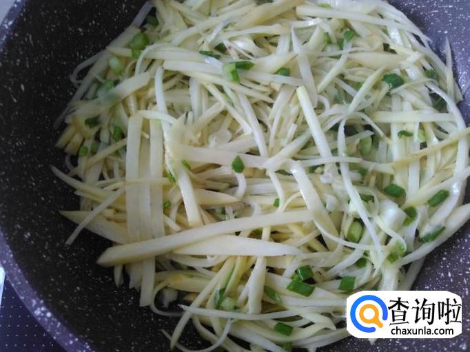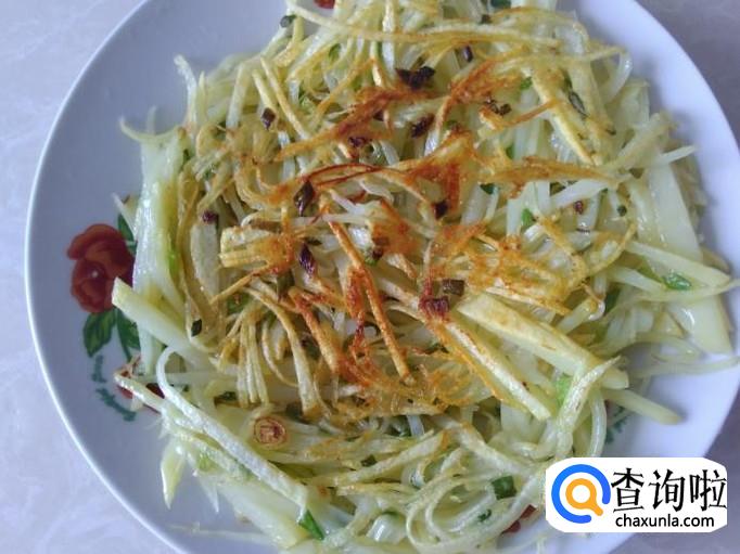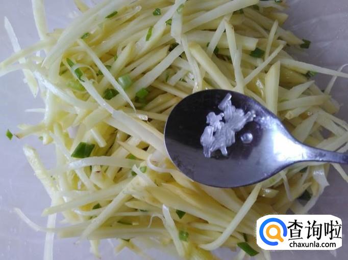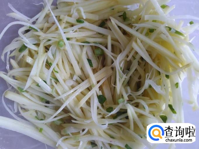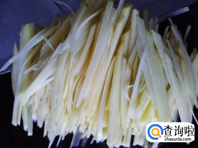 把土豆皮刮掉,然后切成丝。【切好的土豆丝不用泡水要保留土豆丝的淀粉】