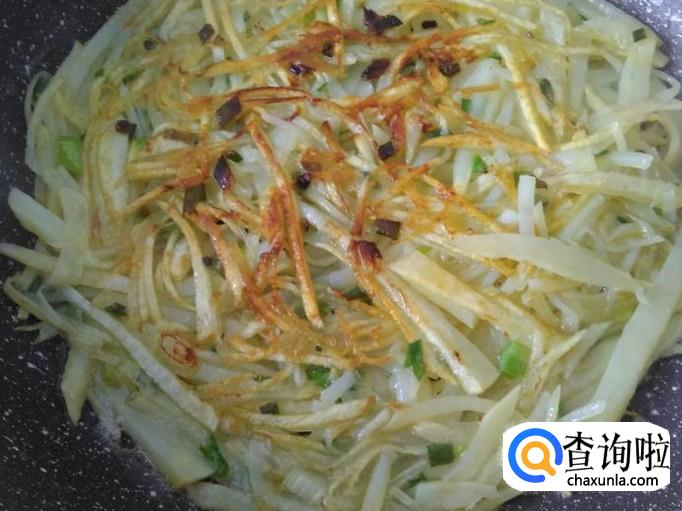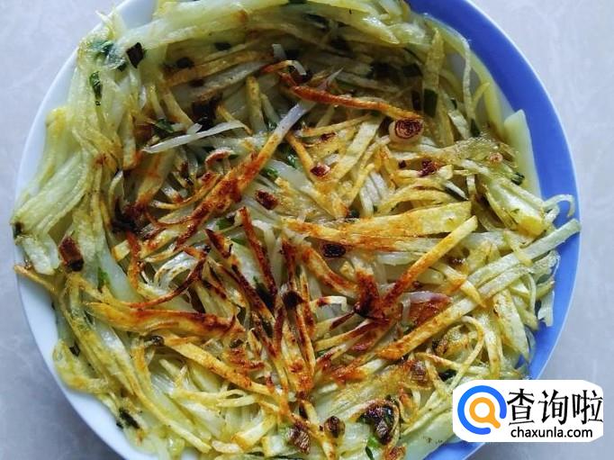 煎7分钟左右用碟子盖住土豆丝,然后压紧碟子,把锅翻转过来,土豆饼就翻转在碟子了。