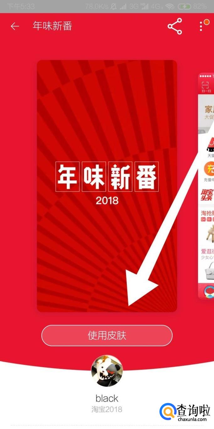 进入皮肤预览页后,最后点击“使用皮肤”按钮即可替换当前淘宝皮肤。