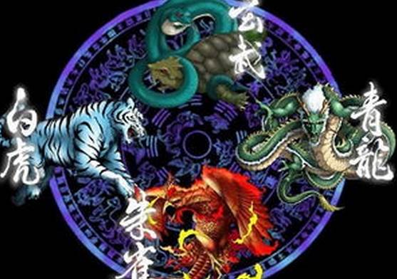 古中国传说的四大神兽分别为青龙、白虎、朱雀、玄武。东方青龙为木,西方白虎为金,南方朱雀为火,北方玄武为水,中央黄为土。属于古代神话和天文学结合的产物。