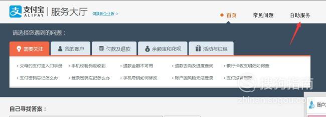 点击自助服务。