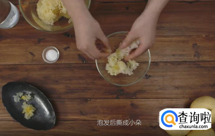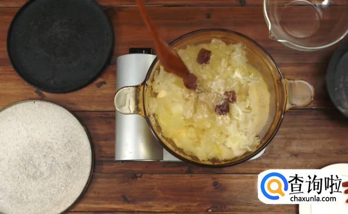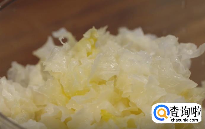 首先,将银耳洗干净,用温水浸泡30分钟。待泡发后撕成小朵,去掉银耳的根部。