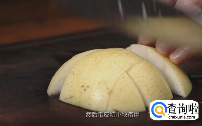 雪梨预先用盐水洗干净,然后带皮切成小块备用。