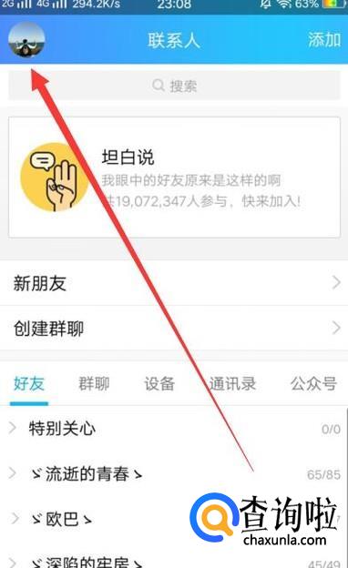 进入之后,点击自己的头像,进入下一页面,如图所示。