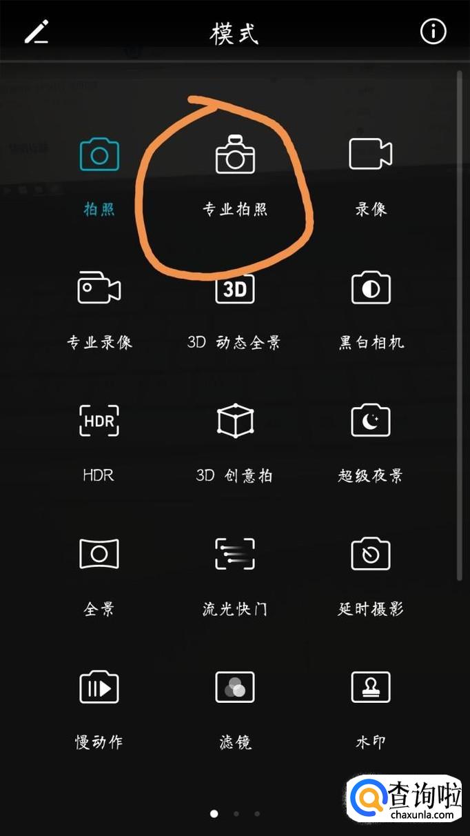 找到“专业拍照”的图标,点击进入