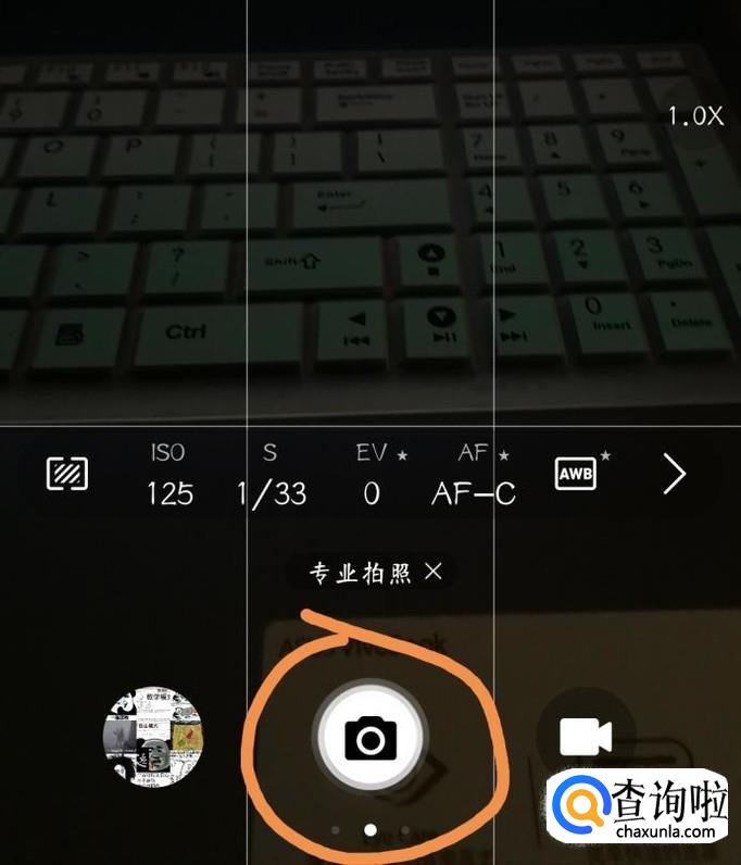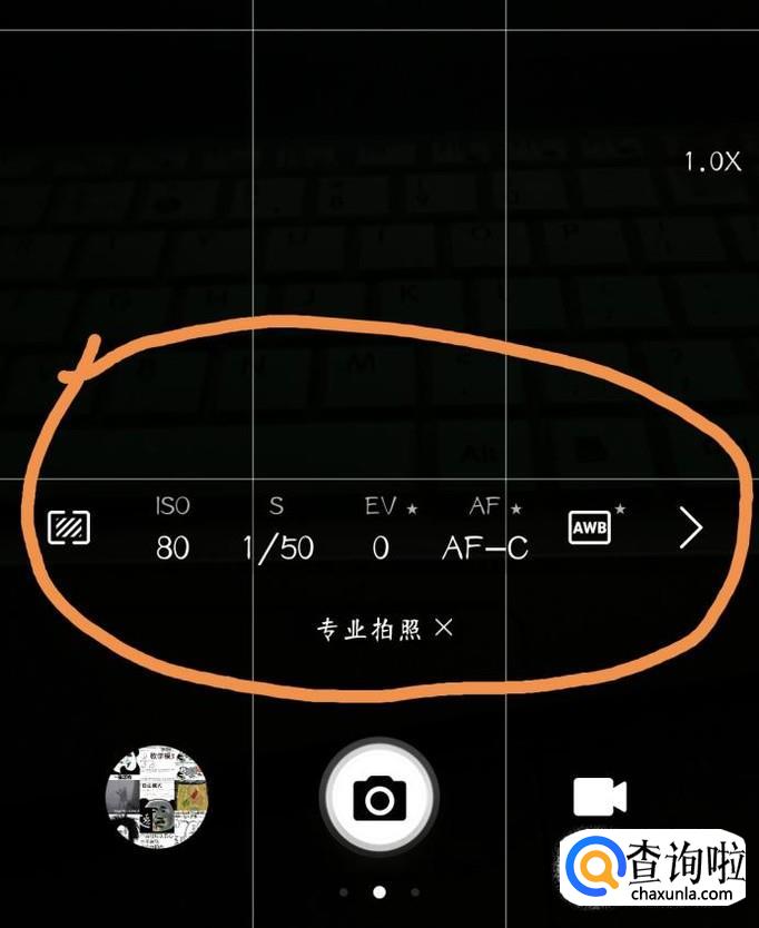 可以看到在专业拍照界面的下方有许多具体的参数,根据自己需要的参数进行设置