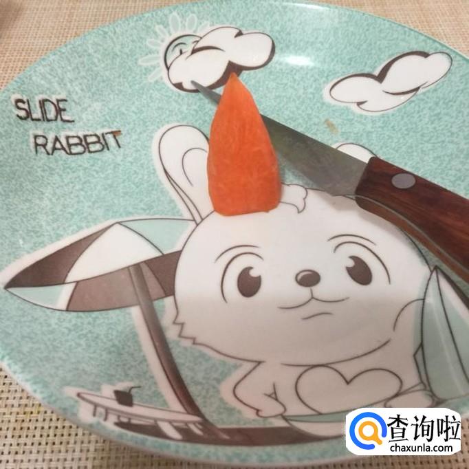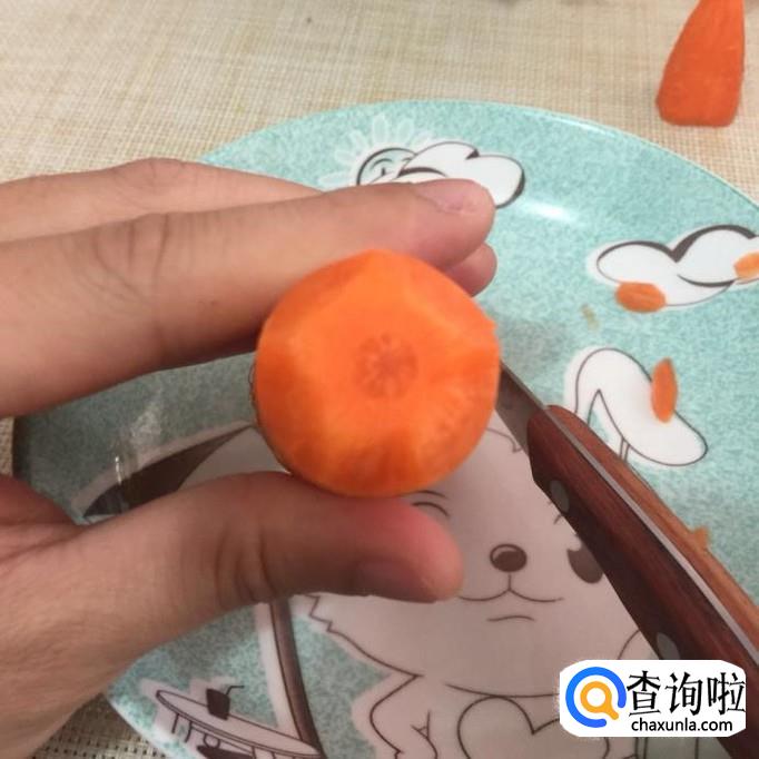 然后把下面那一截的胡萝卜切面处刻成一个五角星的形状,如下图所示。