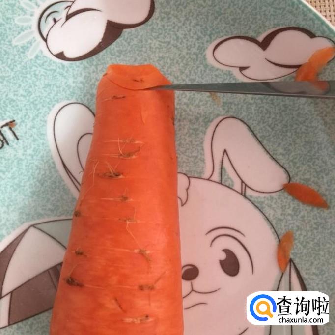 然后把胡萝卜尾部大约3cm处的地方切下来,如下图所示。