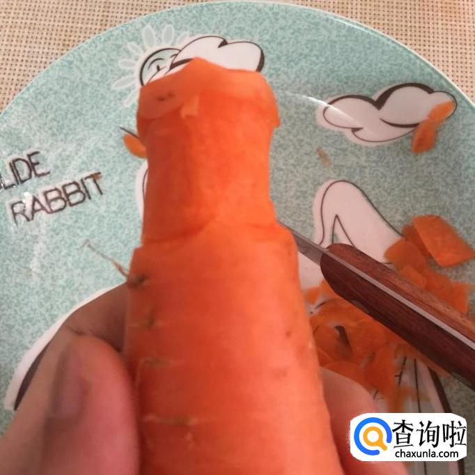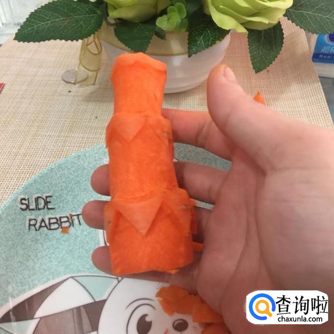 接着把胡萝卜的尾部削成一个火苗的形状,如下图所示。