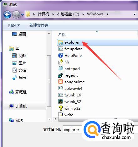 然后我们找到“C:windowsexplorer.exe”,找到过后,点击确定过后便可以打开了。