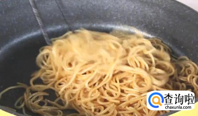 将捞出的面条加入锅中,加入生抽20克、油10克搅拌均匀。