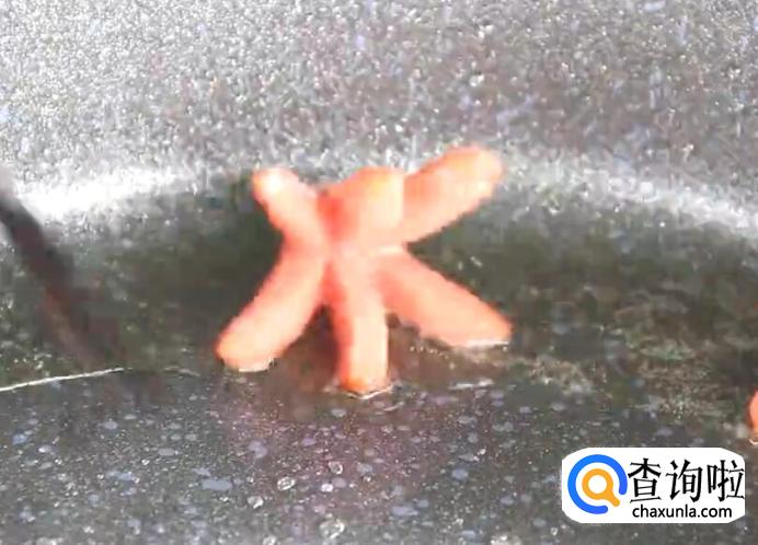 锅内放入少量的油,放入脆皮肠,将脆皮肠爆炒开后捞出。
