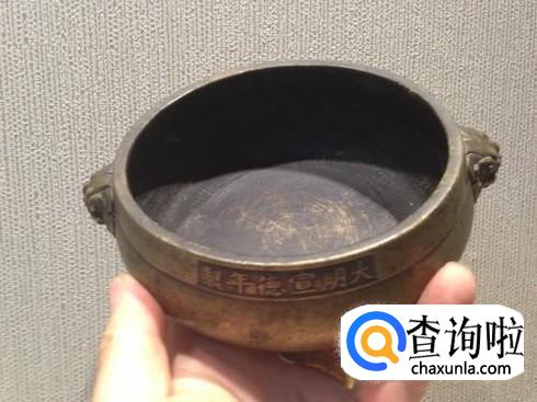 大明宣德炉金水很厚,呈黄中闪白色,而假冒的大明宣德炉金水薄,不均匀,显轻浮。