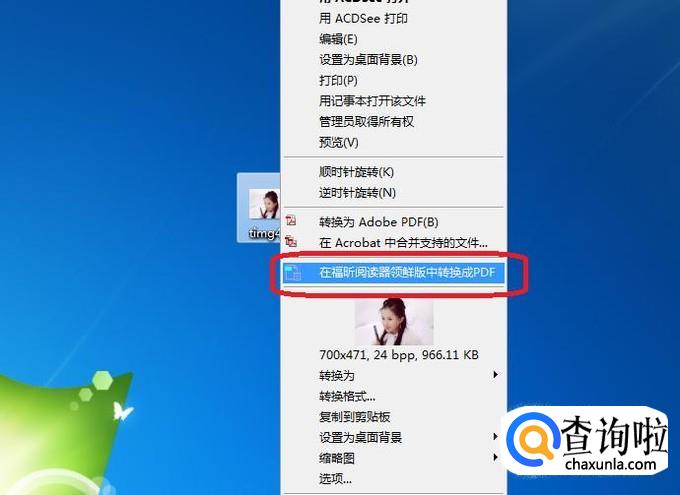 然后,我们右键点击tif文件,如图所示,选择“在福昕阅读器中转换成PDF”。