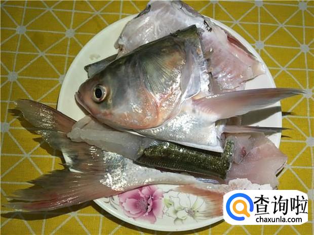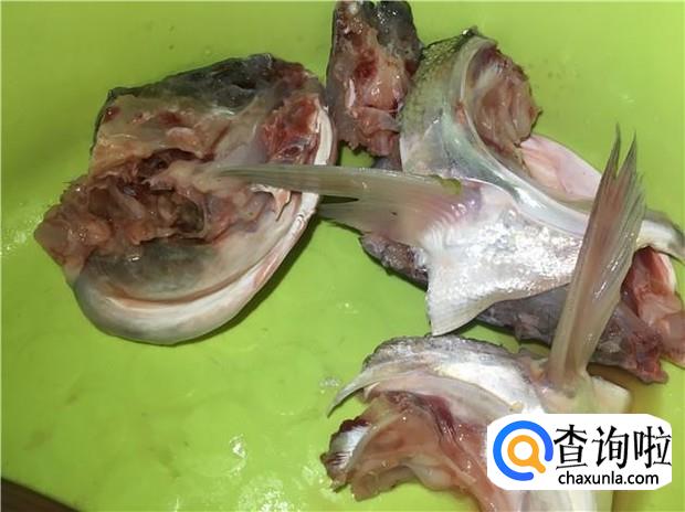 然后清洗鱼头,在清洗鱼头的时候,倒入一勺料酒一起清洗,这样可以去除一些鱼腥味。