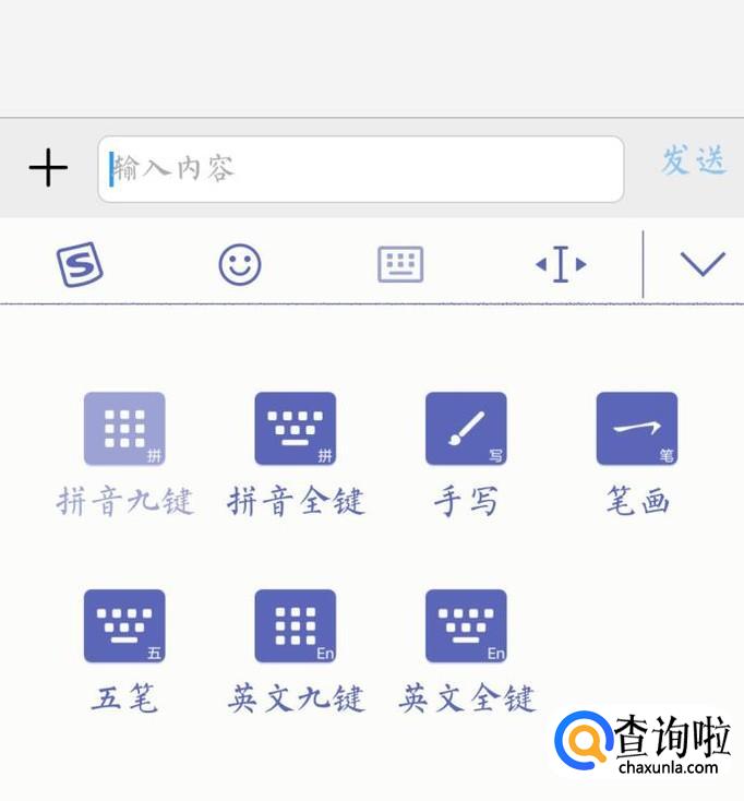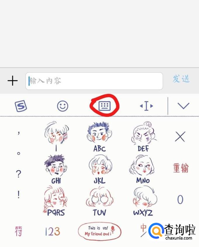 进入输入文字的页面,弹出搜狗输入法,在选项中找到键盘标识,点击键盘标志。