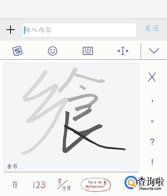 进入手写键盘,选择全写,在手写框中写下自己不会读的文字。你可以选择在手写框中写或调整为全屏写。