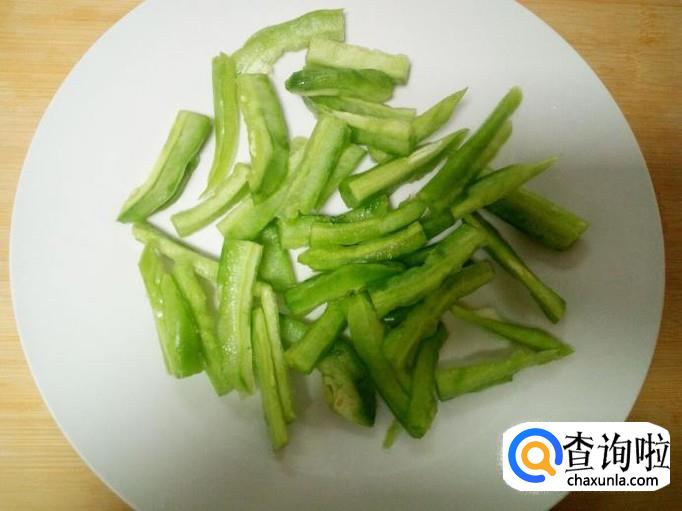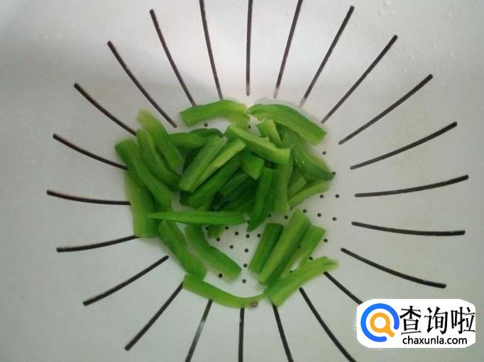 苦瓜去瓜瓤,用水清洗干净,控干水分,切成条。放入水中浸泡,去除苦味,然后用水投几遍,控干水分。