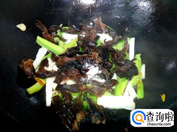 炒至木耳变软,透明,放入少许味精,关火出勺。