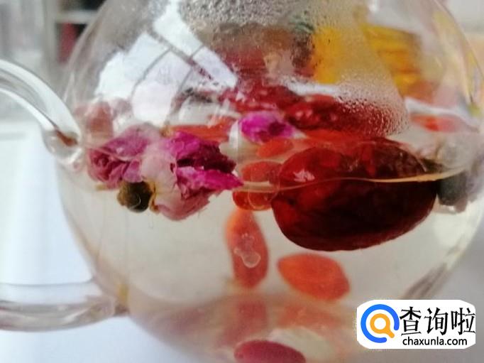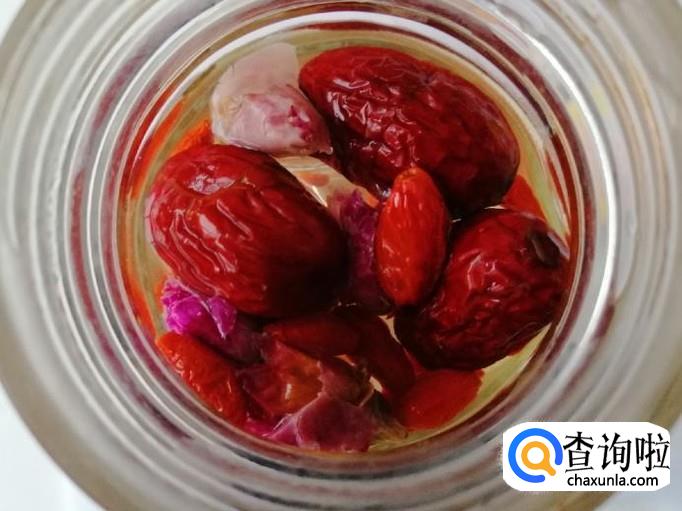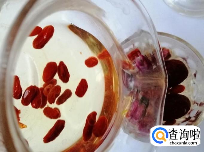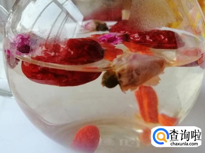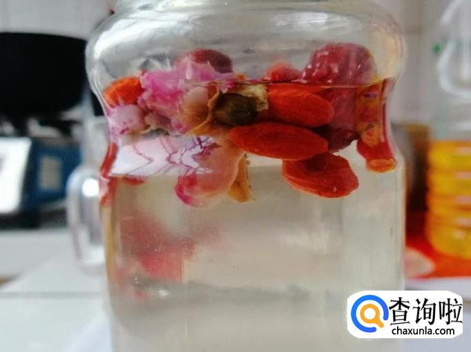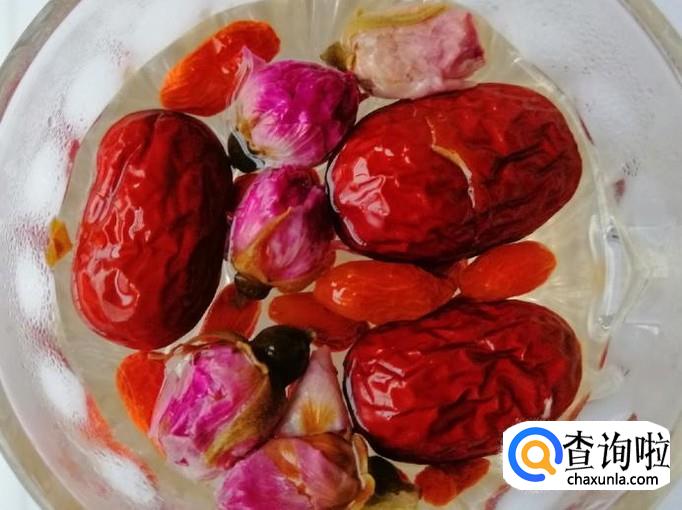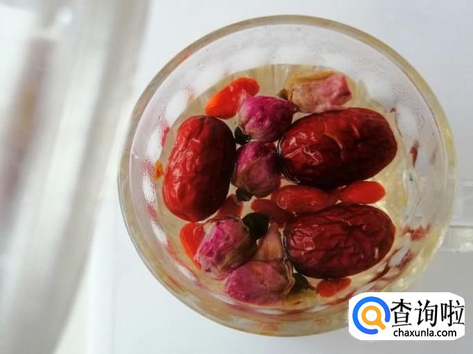下图是随着时间的推移,红枣、玫瑰花、枸杞在不断的变化,释放出所有的营养成份。红枣已泡胀,玫瑰花已泡开,而且看上去很不错。要是用沸水冲泡玫瑰花的话,现在早没玫瑰花颜色,而且也没营养了。