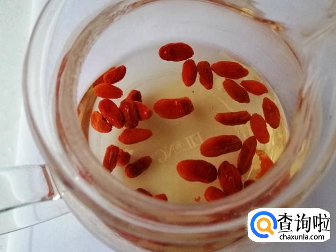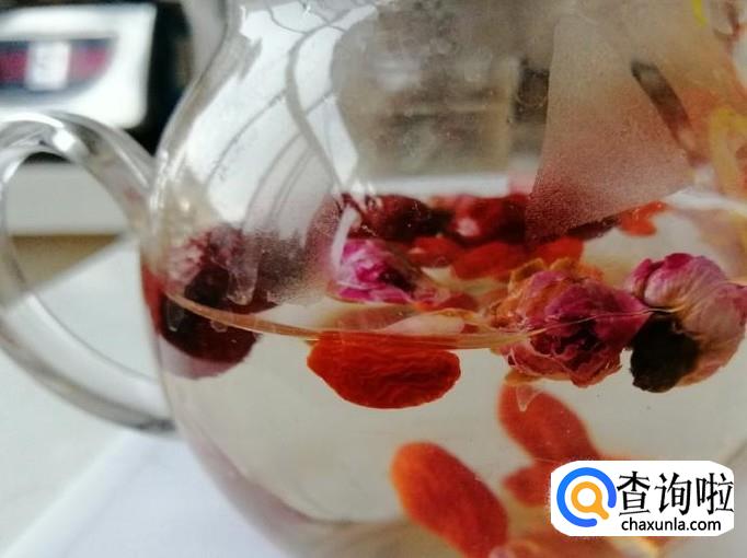 再放置一会后加入用温水泡好的枸杞,枸杞最好用水温大约60度以下,这三个不同时段放进去的食材,冲泡的才不会流失营养成份。