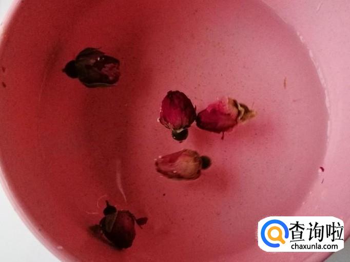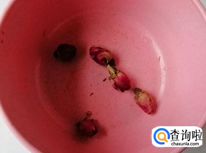 玫瑰花虽然好处很多,但不适合大量食用,一般用量上4-6朵就可以,先用温水冲一下玫瑰花,冲好滤水待用。