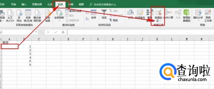 选择“A2”单元格,选择“数据”,选择”数据验证”。