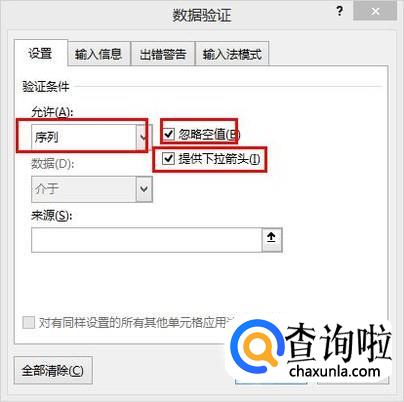 选择“设置”,“允许”选择“序列”,在“忽略空值”、“提供下拉箭头”前打勾。