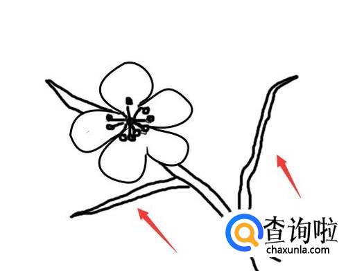 花朵画出以后,给花朵画上主枝干,如图所示: