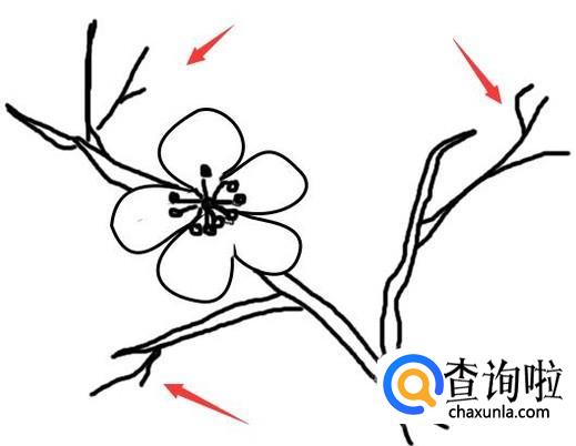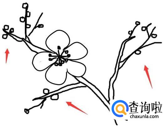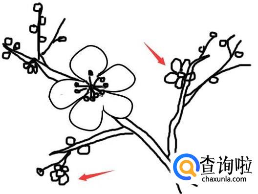 在小枝芽及分支上画出含苞待放的花骨朵,如图所示: