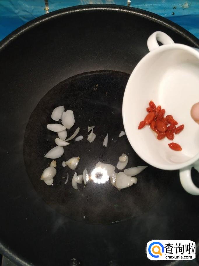 将泡好的枸杞子也倒入锅中,将枸杞子提前倒入锅中,可以让枸杞子的营养更好的融入到汤中。
