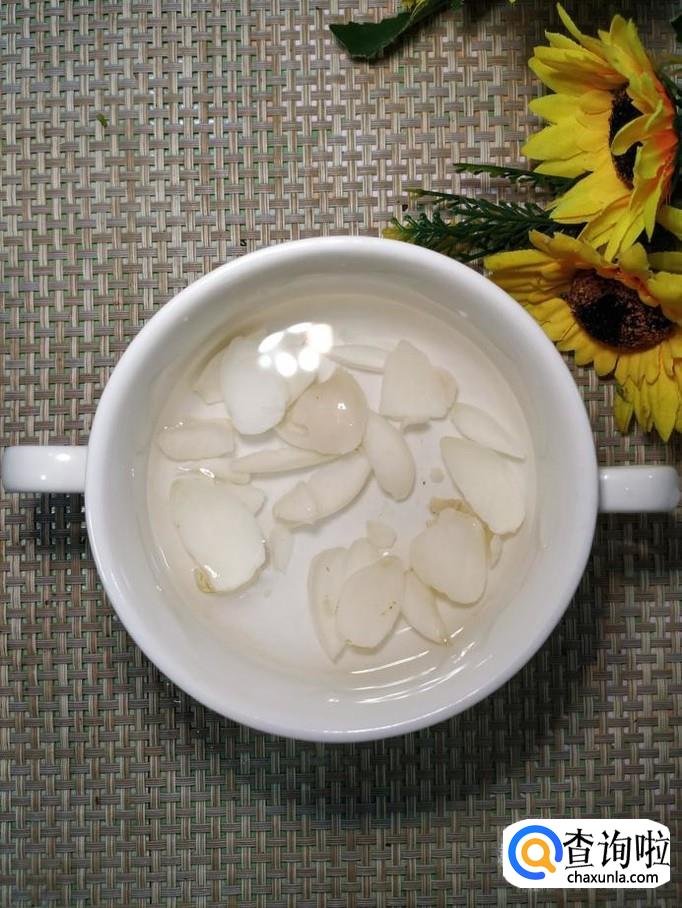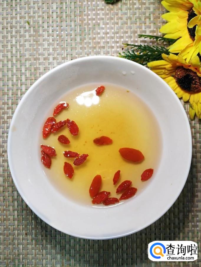 再准备适量百合和枸杞子,用清水泡开。我这里准备的是干百合,用清水泡了半个小时以上。