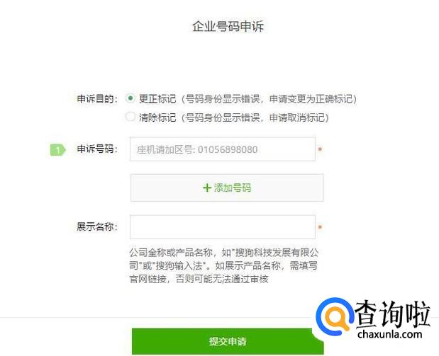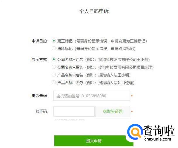 在此页面选择个人号码申诉或者企业号码申诉。