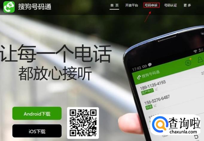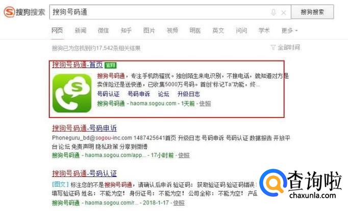 搜索搜狗号码通官网,并点击进入。