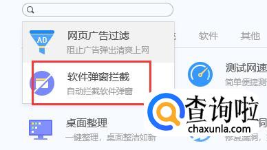 回到搜索框,输入软件弹窗,选择软件弹窗拦截。