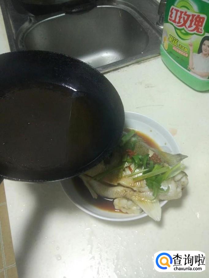 热锅下油,然后把热油淋在鲈鱼上,一盘好吃的清蒸鲈鱼就做好啦~