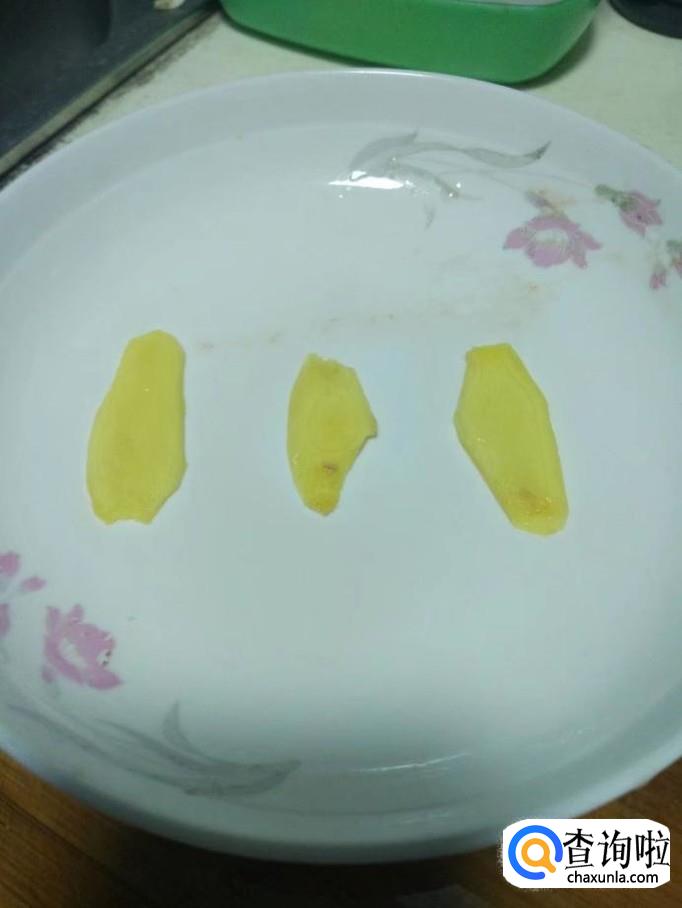 在碗底放姜片,然后放上腌好的鲈鱼