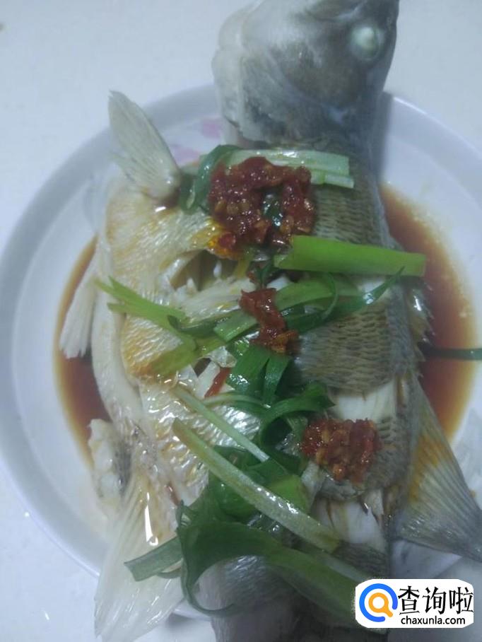 浇上蒸鱼豉油,放上少许豆瓣和葱丝