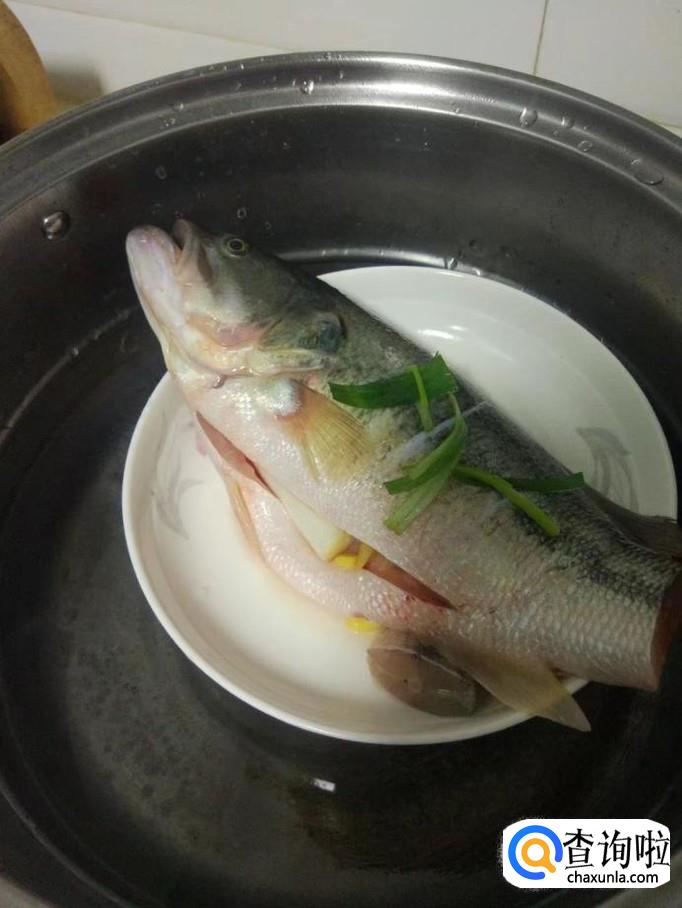 把鲈鱼放入锅内,隔水蒸10~15分钟