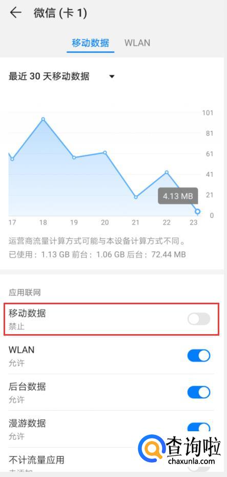查看网络里是不是禁用了微信的移动数据联网,如果关闭就会导致微信无法连接网络,重新开启即可。