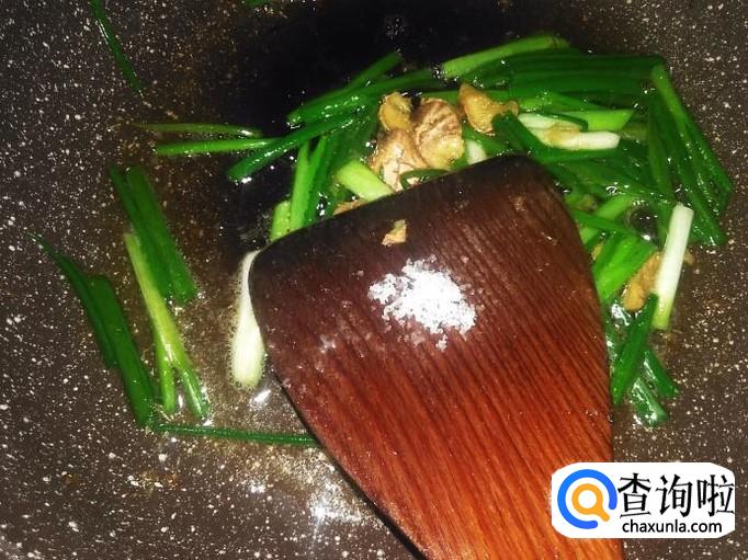 加适量的盐翻炒一下,然后铲铺到鱼面上就可以了。