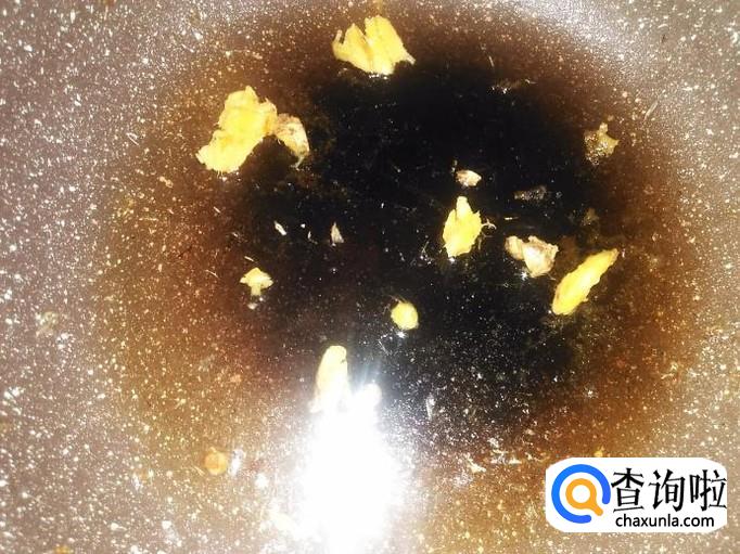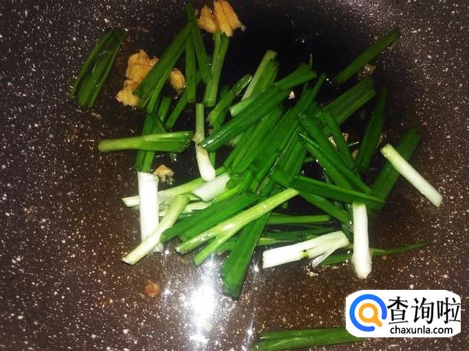 再开火下油,放姜片进去爆出味来,然后放香葱进去。