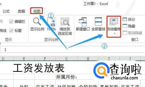 最后一步也很关键,如果员工人数多的话,我们往下滑动页面,那么最上方的姓名、序号以及基本工资这一列就会看不见,所以我们应该将其冻结,如何冻结呢?假如我们想让前三列不随表格滚动,那么就选中第四列,然后依次点击"视图"-"冻结窗口";